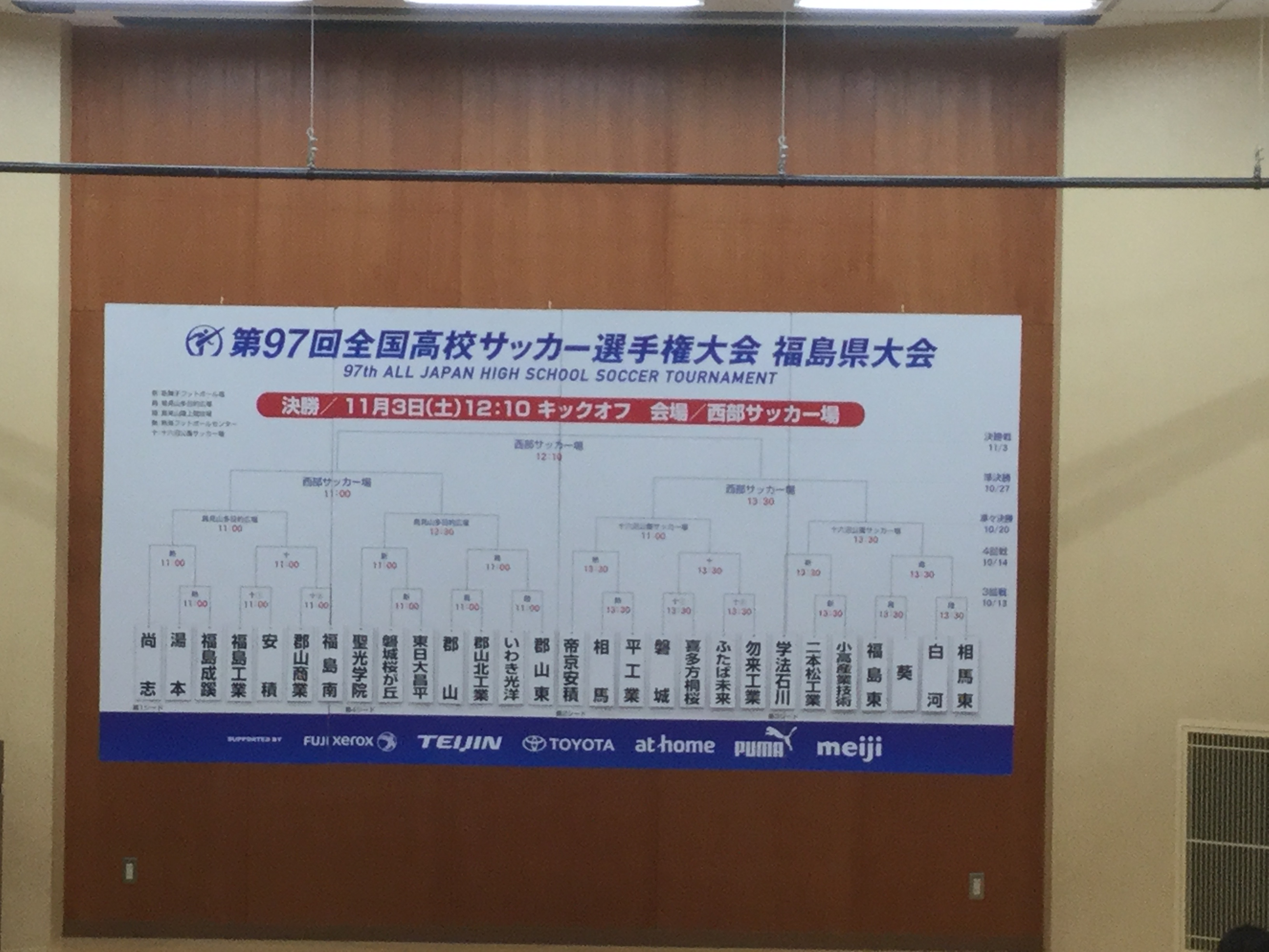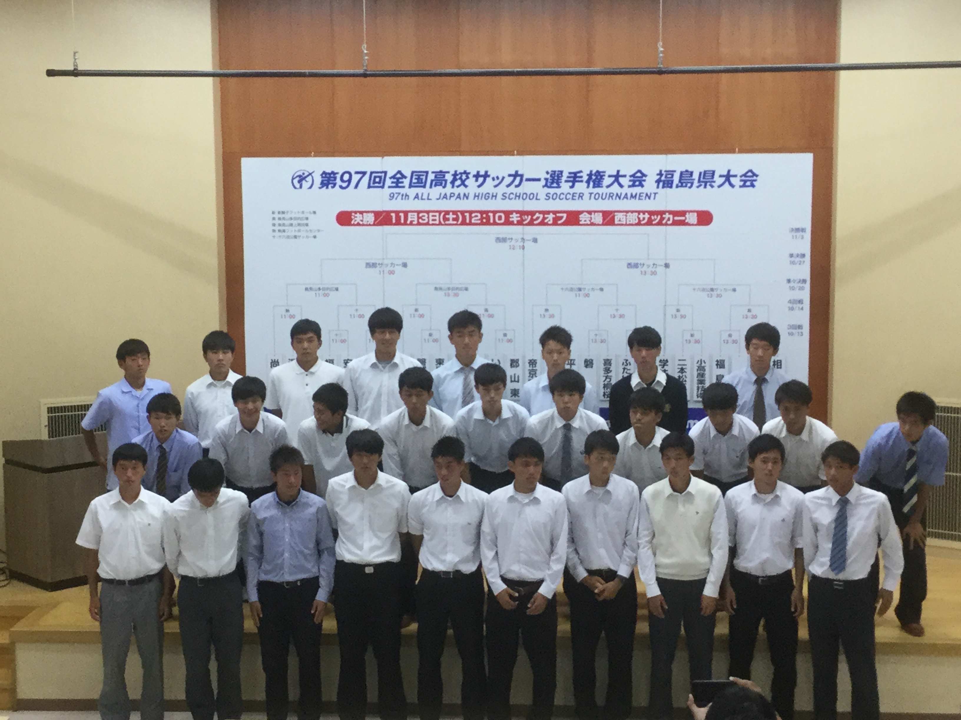 9月25日(火)、尚志高校にて第97回全国高等学校サッカー選手権大会福島県大会二次大会の組合せ会議が行われました。対戦相手は福島東高校に決定しました。新人チームで臨む闘いは、10月13日(土)鳥見山多目的広場にて13時30分キックオフです。応援のほどよろしくお願いいたします。