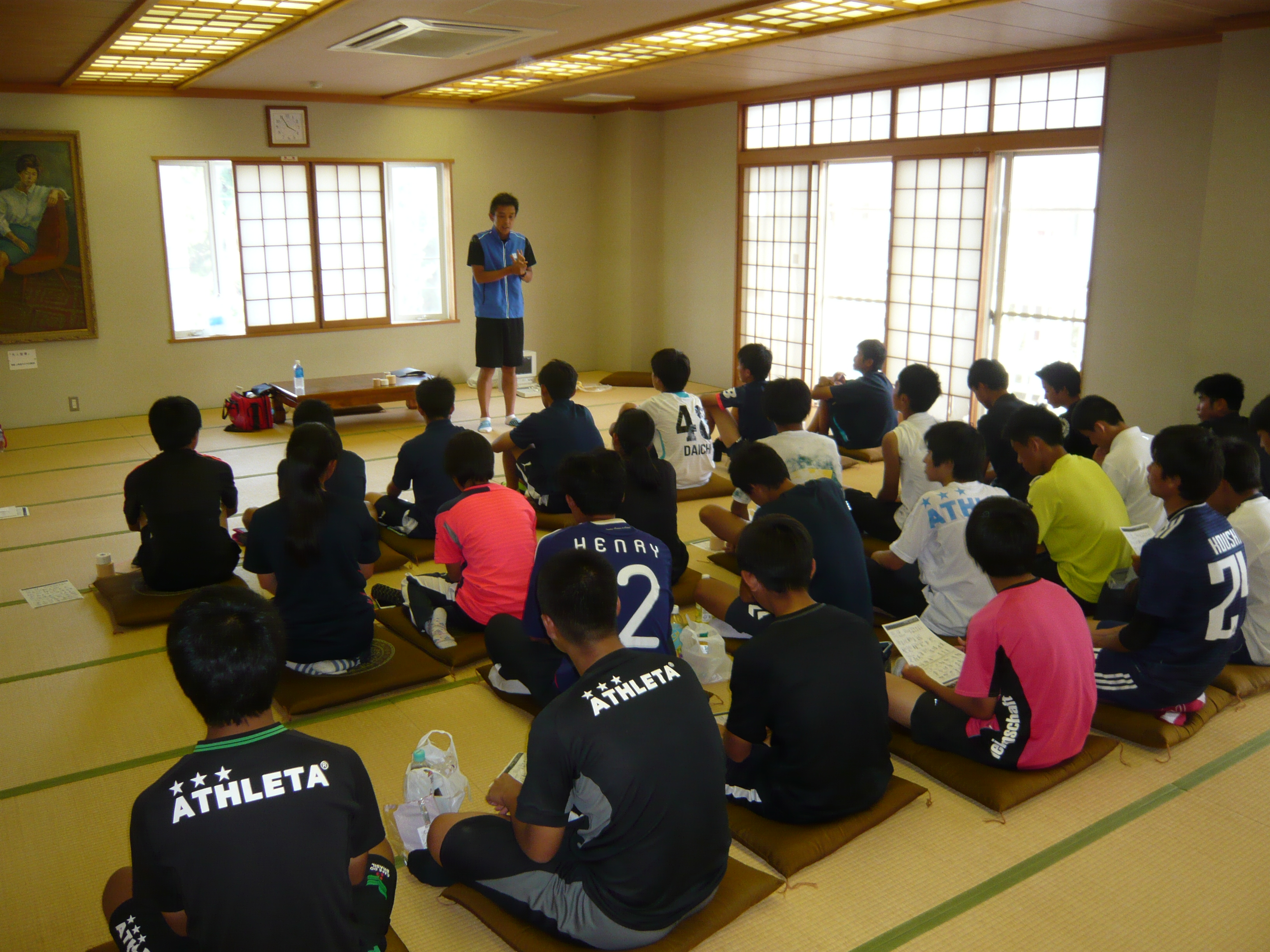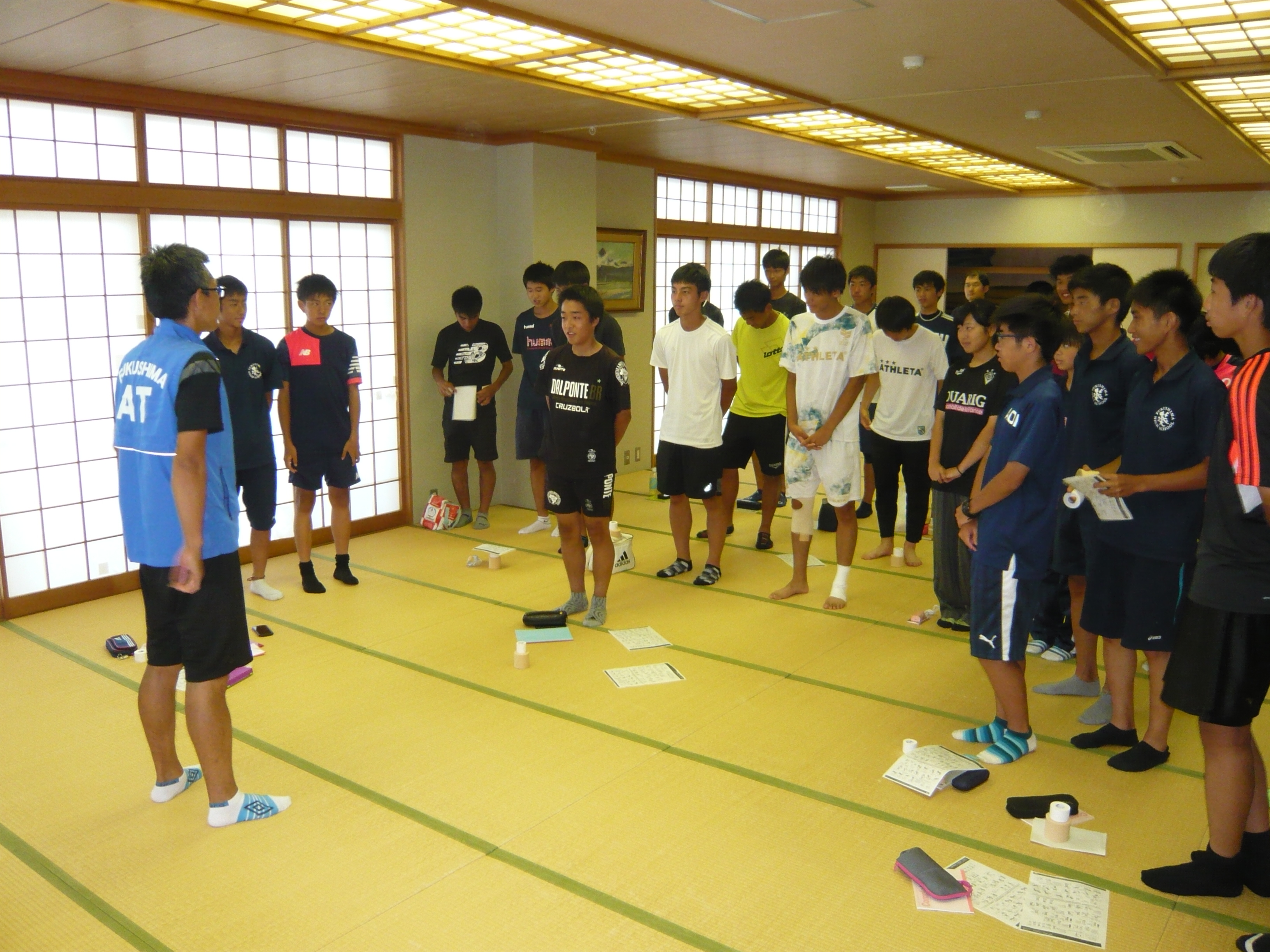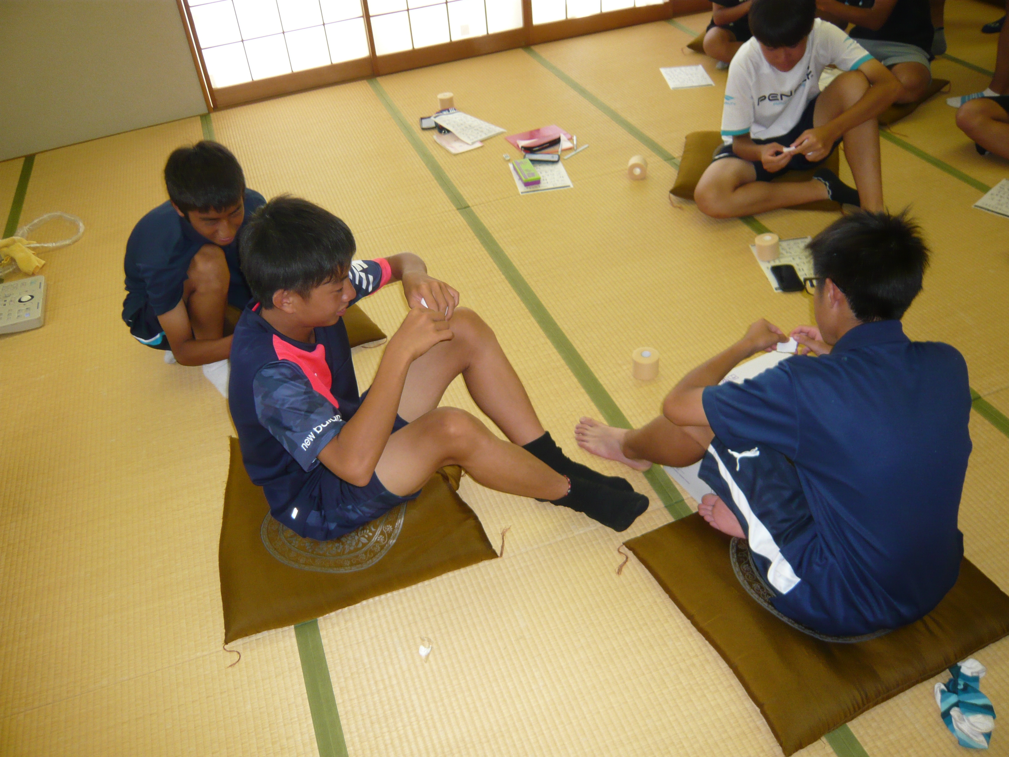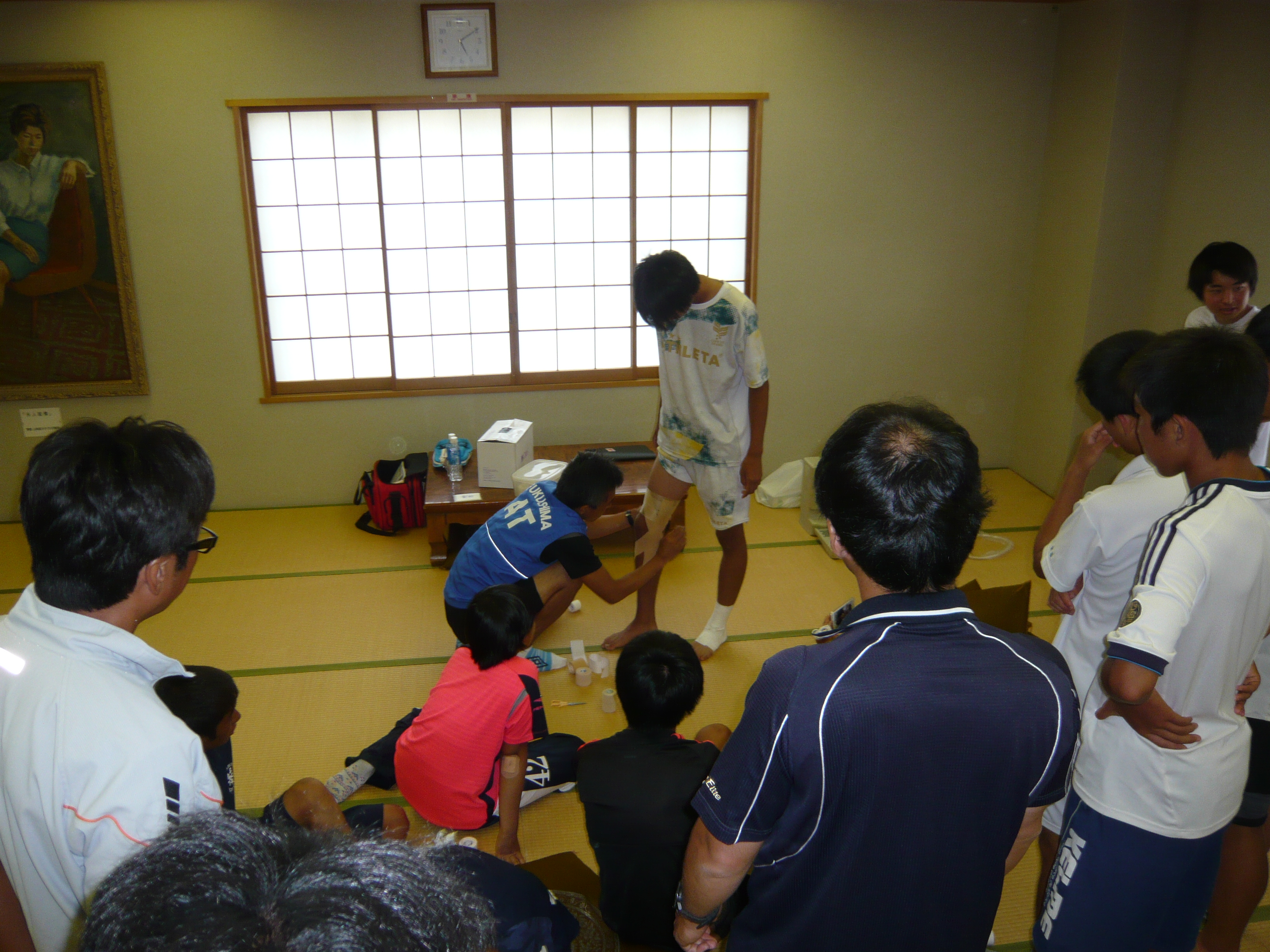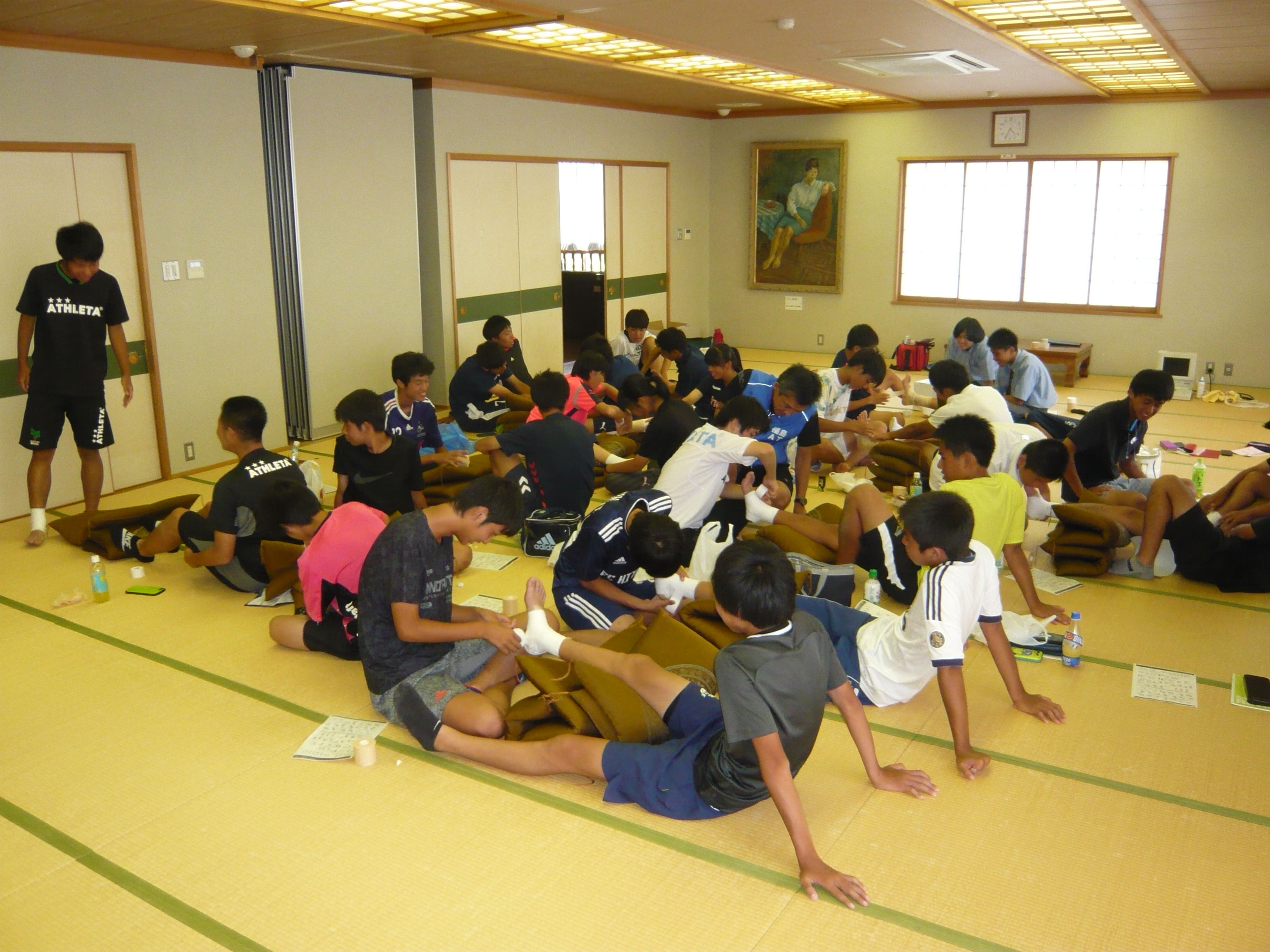 8月18日(土)、喜多方高校とのトレーニングマッチの後、喜多方市にある菊地接骨院院長の菊地真人氏をお招きし、テーピング講習会を開きました。