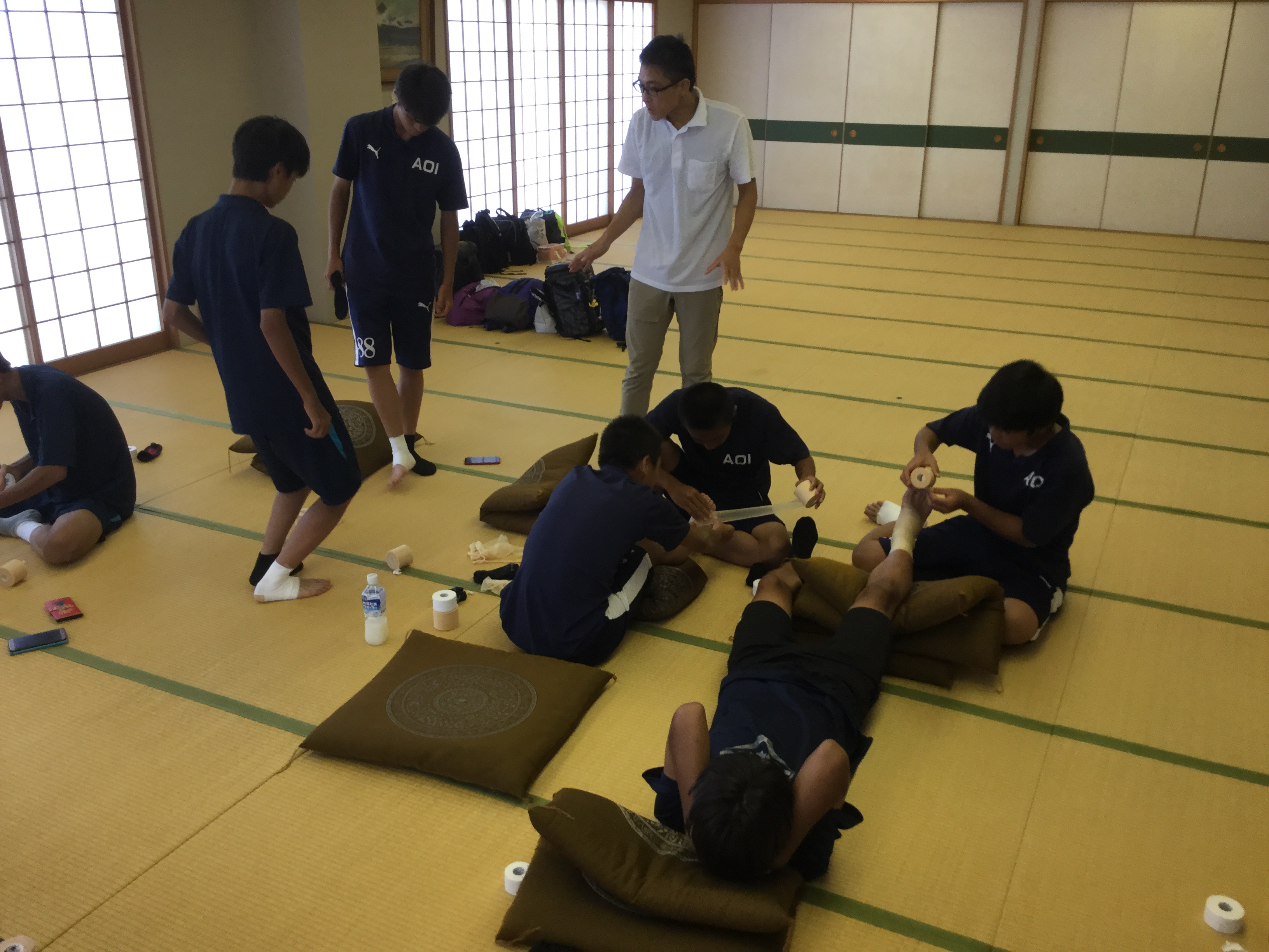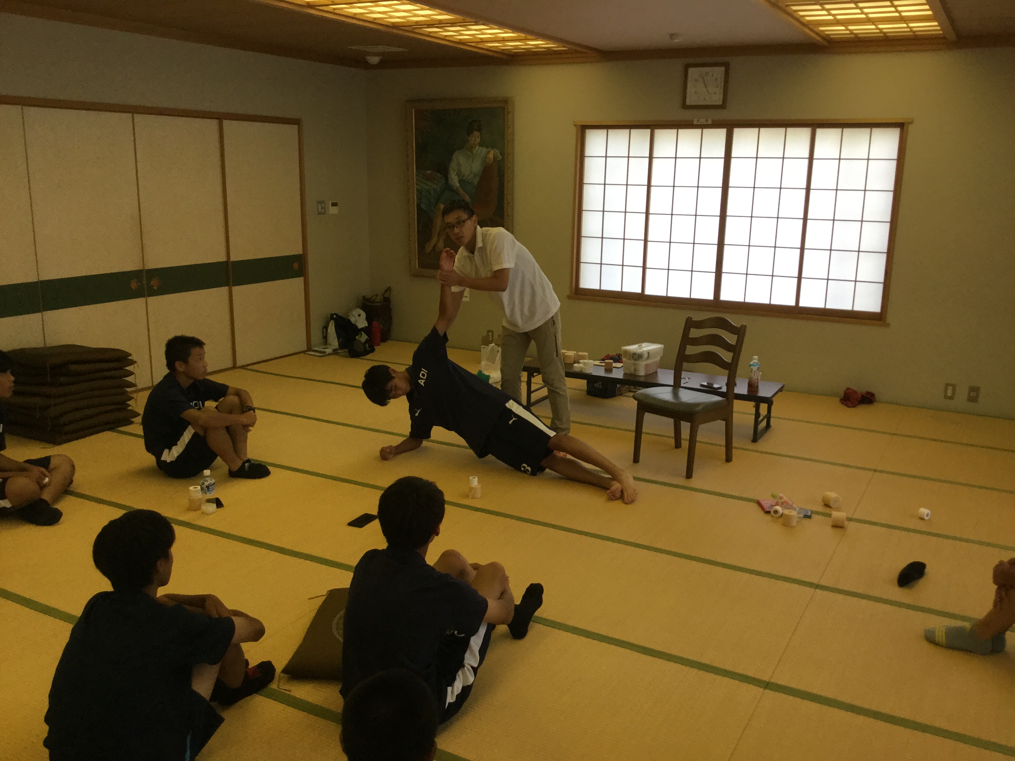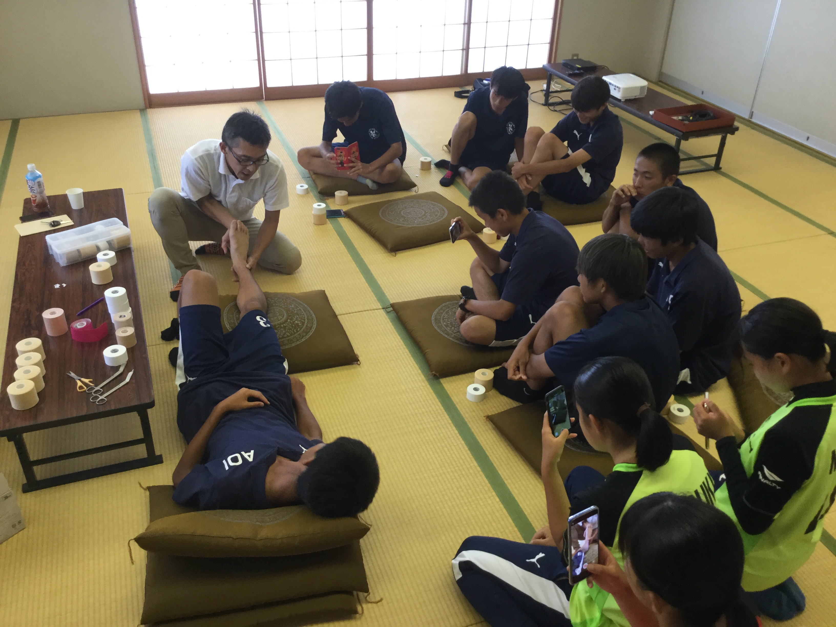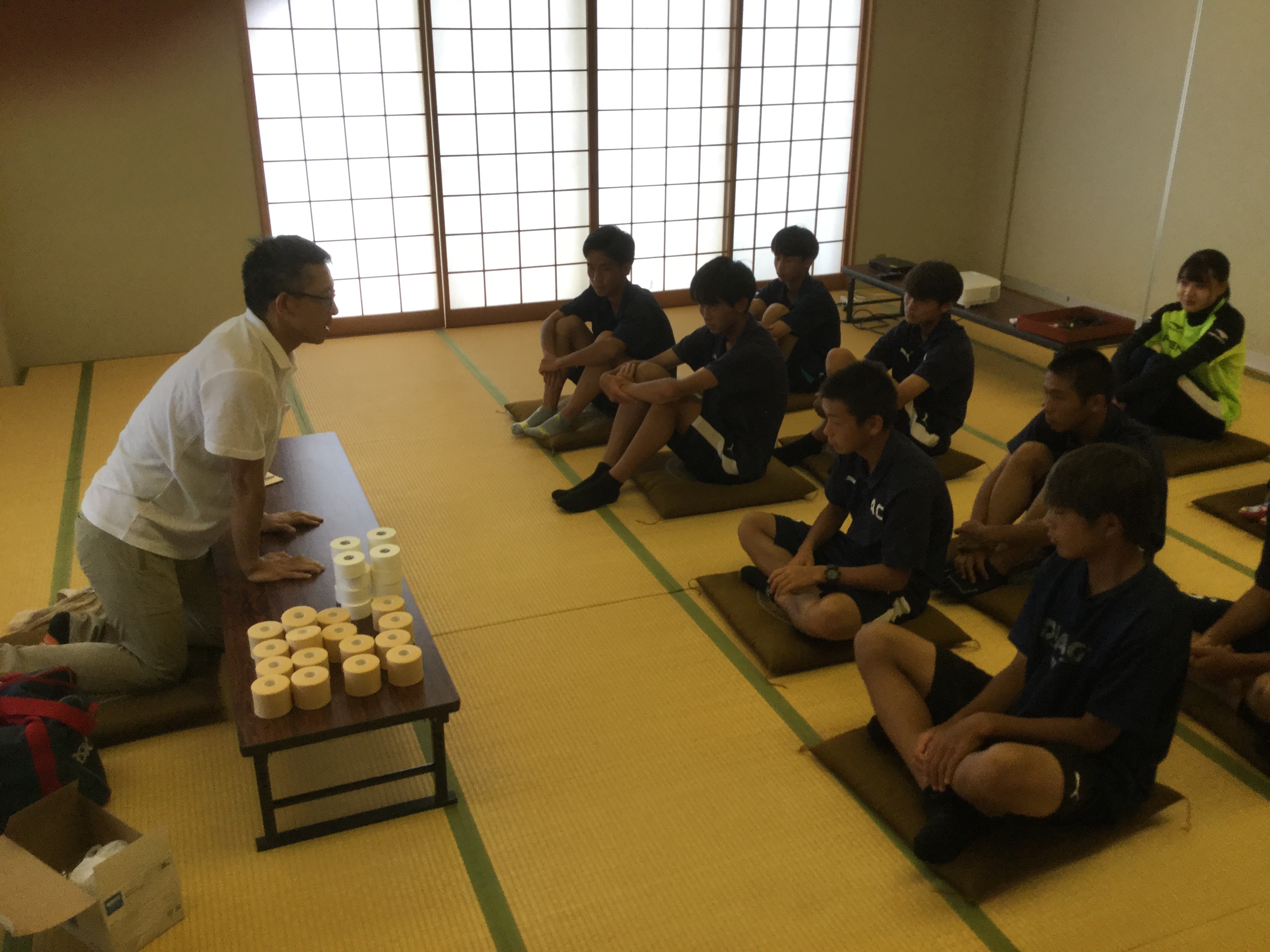 8月10日(土)、喜多方市にある菊地接骨院の院長である菊地真人様を講師に招きまして「テーピング講習会」を松操会館にて行いました。サッカー選手に特有なスポーツ傷害に対する予防的かつ処方的なテーピングの方法を学ぶことができました。