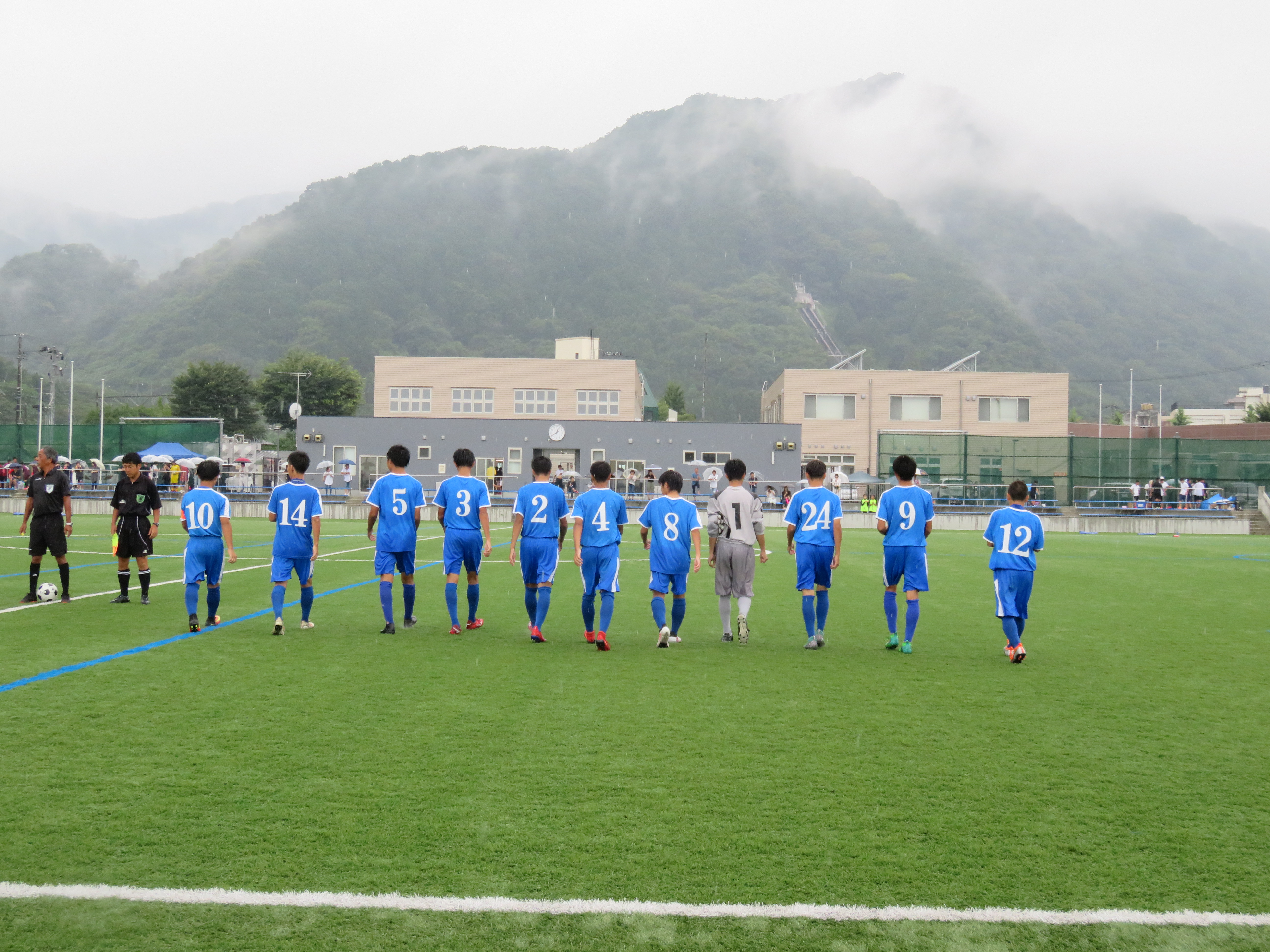 8月20日(火)、磐梯熱海フットボールセンターにて「第98回全国高等学校サッカー選手権大会福島大会1次大会」が開催されました。あいにくの激しい雨の中の戦いとなりましたが、終始攻撃を止めなかった葵高校が新地高校に勝利しました。