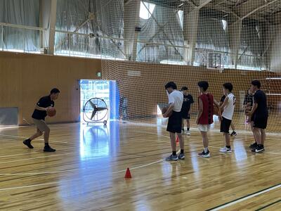 前半は、以前、葵高校にご勤務し、バスケ部顧問であった室井冨仁先生にクリニックをしていただきました。