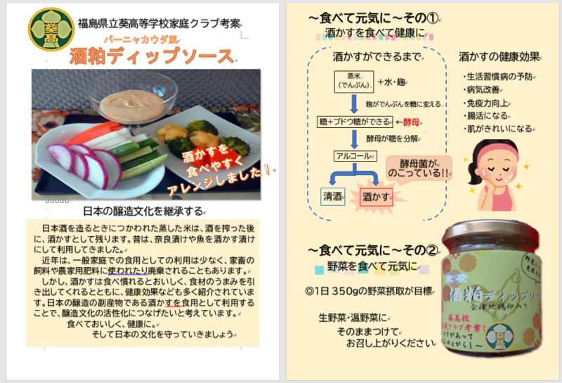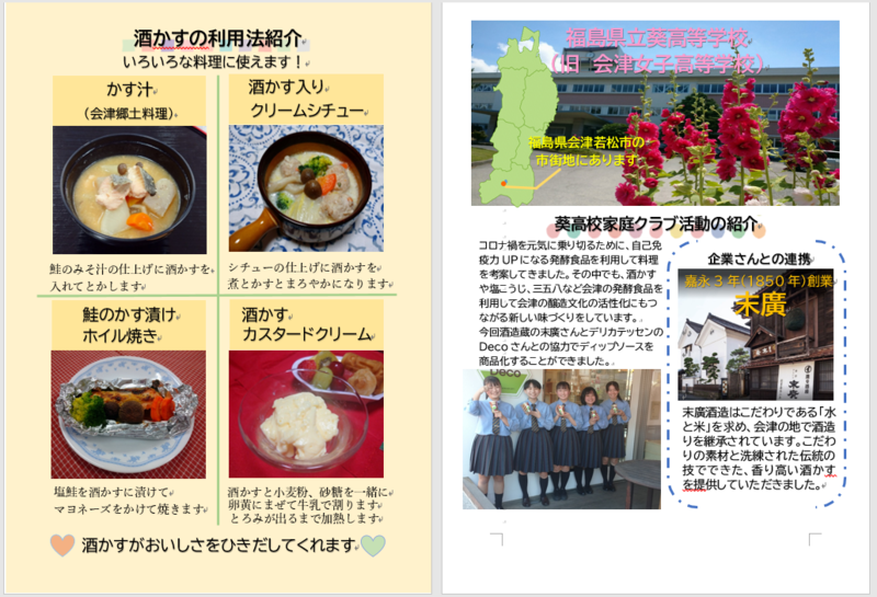 新型コロナ禍のなか、「食べて免疫力をつける」ことと「会津の全体を元気にしたい」という思いから、会津を代表する産業である酒造の副産物「酒粕」を使って皆さんに好んで食べていただけるメニューを考えました。