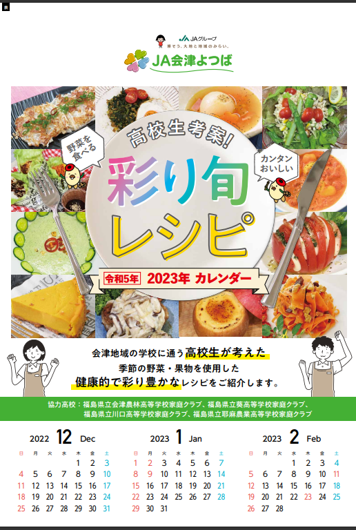 令和5年度にJAカレンダーへ家庭クラブ考案野菜料理を掲載させていただき、