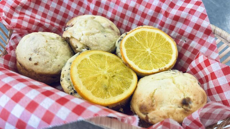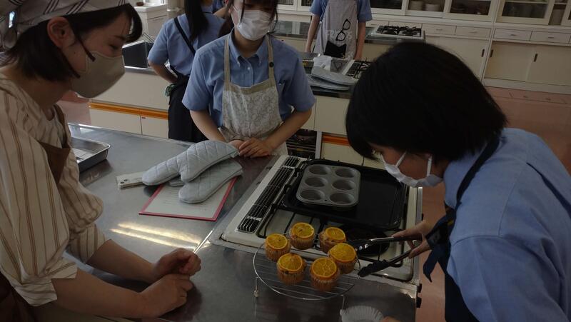 7月に伝達講習会を行い、葵高校オリジナルの「オレンジ&チョコの酒かすマフィン」を作りました。
