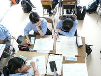 6月26日(金)、1学年の「総合的な探究の時間」は葵ゼミ「自分を知る・世界を知る(4)」を行いました。「SDGs」に関する会津の課題を見つけるために、新聞の切り抜きの内容を発表し、お互いに付箋で意見交換しました。これから探究スキルをアップするために視野を広げ、思考ツールを活用していきます。