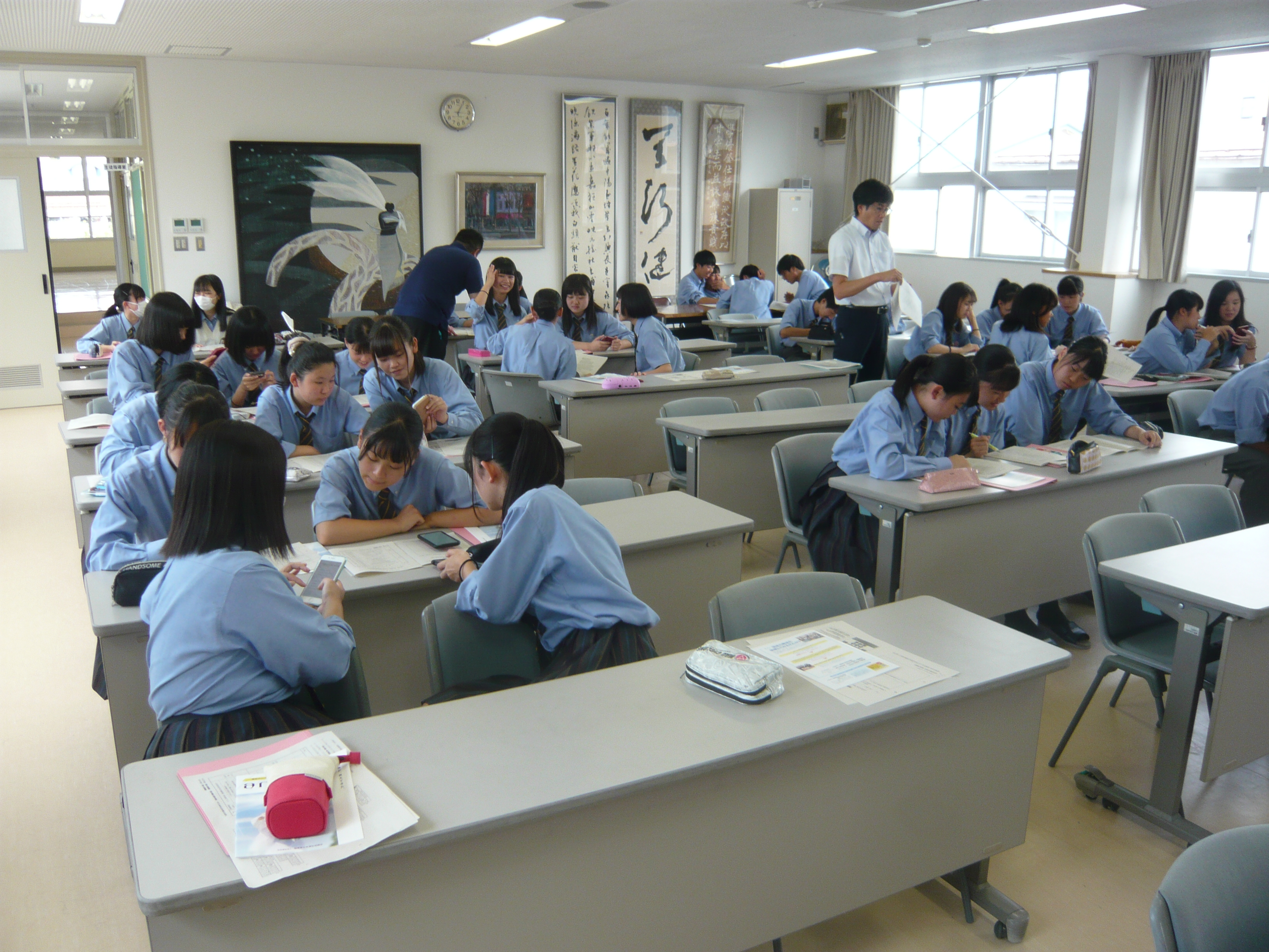 9月13日(金)の「総合的な探究の時間」は、「課題と仮説を検討する・出前講座を選択する」を行いました。いよいよ探究活動の課題を設定し、課題解決に向けた仮説、手立てをグループ内で話し合いました。また、今年度も市役所などの外部団体のご協力をいただきまして出前講座を開講することになりましたので、各グループで希望する講座の選定を行いました。