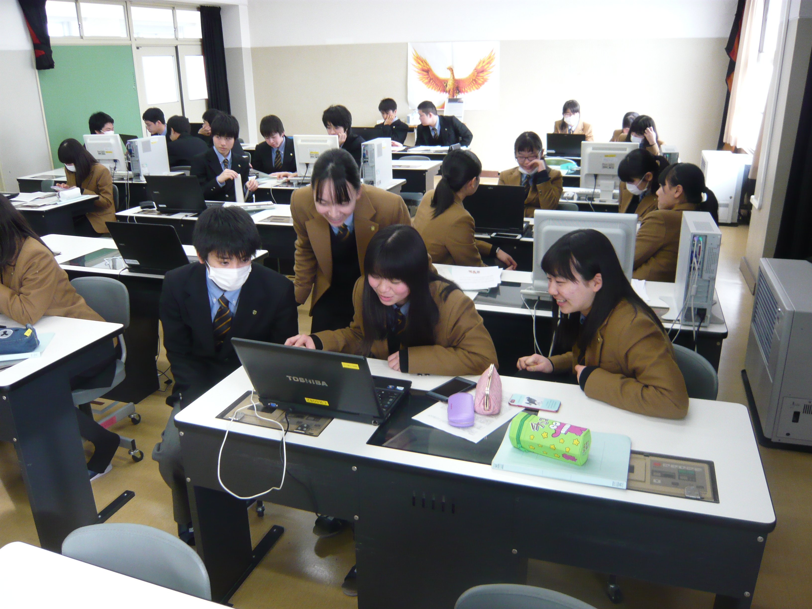 2月15日(金)を提出期限に、プレゼンテーションを終えてから再度研究内容や結論などを検討して論文を作成します。グループ内でいろいろな意見を出し合い、議論しながら取り組んでいました。