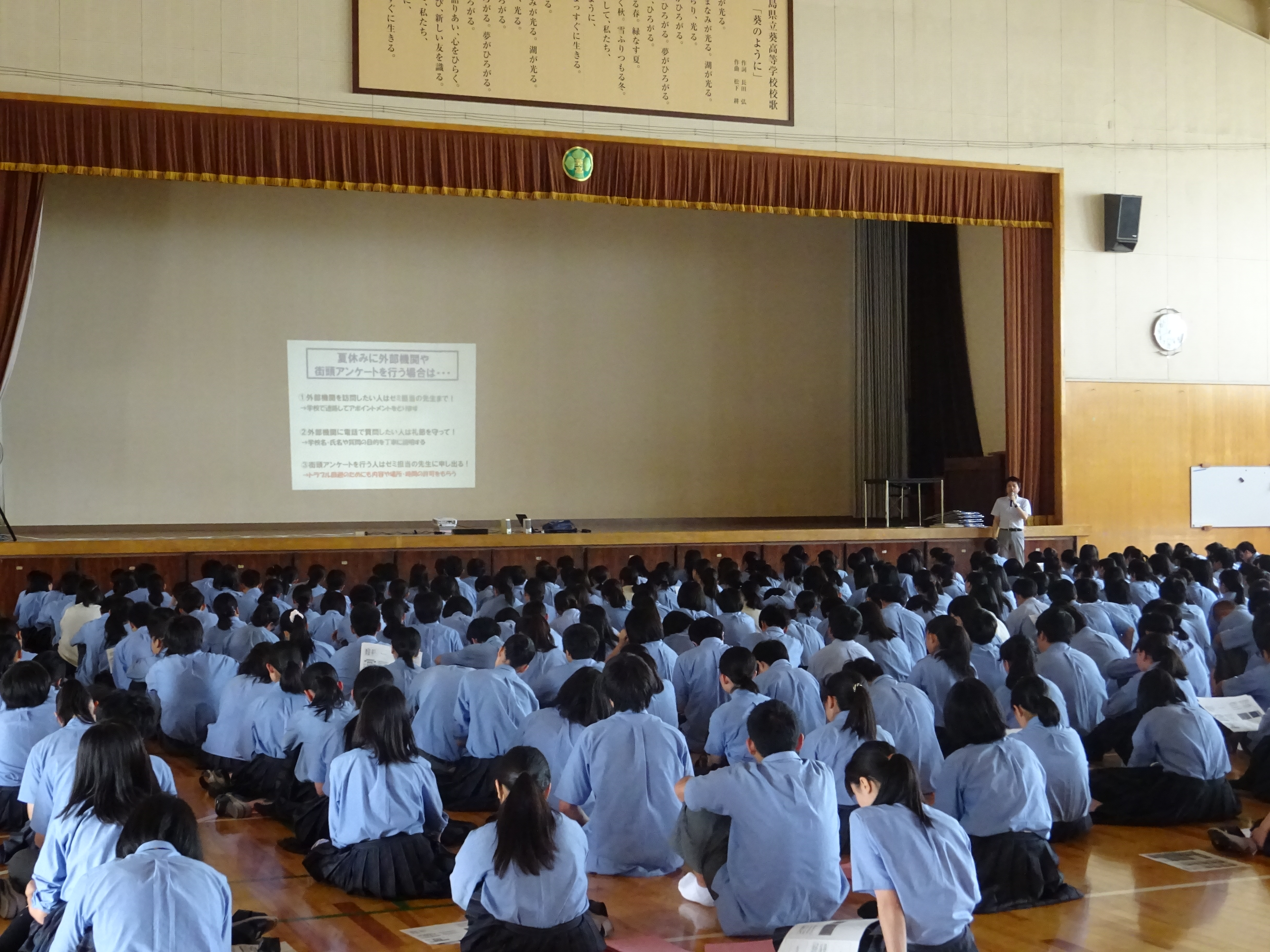 4月25日(金)、生徒総会に先立ちまして、「葵ゼミ」の説明が行われました。昨年度より取り組みが始まりました「葵ゼミ」をどうして行うか、現在どのような力を求めれているのかなど、これから取り組む根拠を生徒たちは真剣に聞いていました。