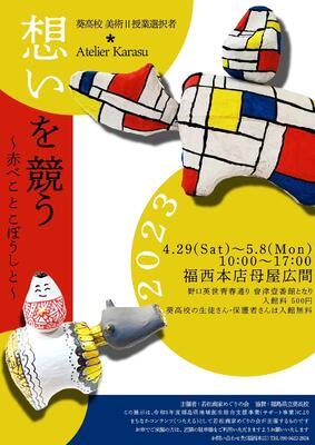 令和4年度美術Ⅱ選択者の作品が、明日4月29日㈯~福西本店さんにて展示されます。