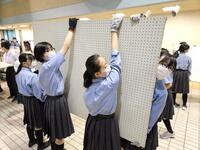 昨年、地区の美術展・文化祭・県の美術展と展示パネル設置の機会が多かったため、2年生の設置スキルが高く予定よりも早く会場設営が完了しました。