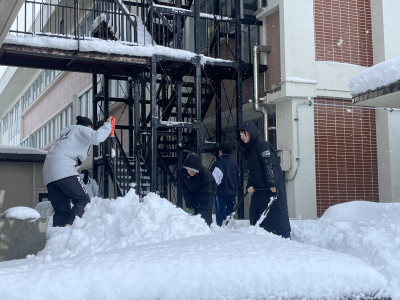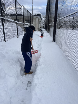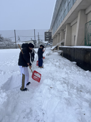 朝から雪かきでトレーニングにもなり、運動部同士の団結力と協調性を見ることができました。