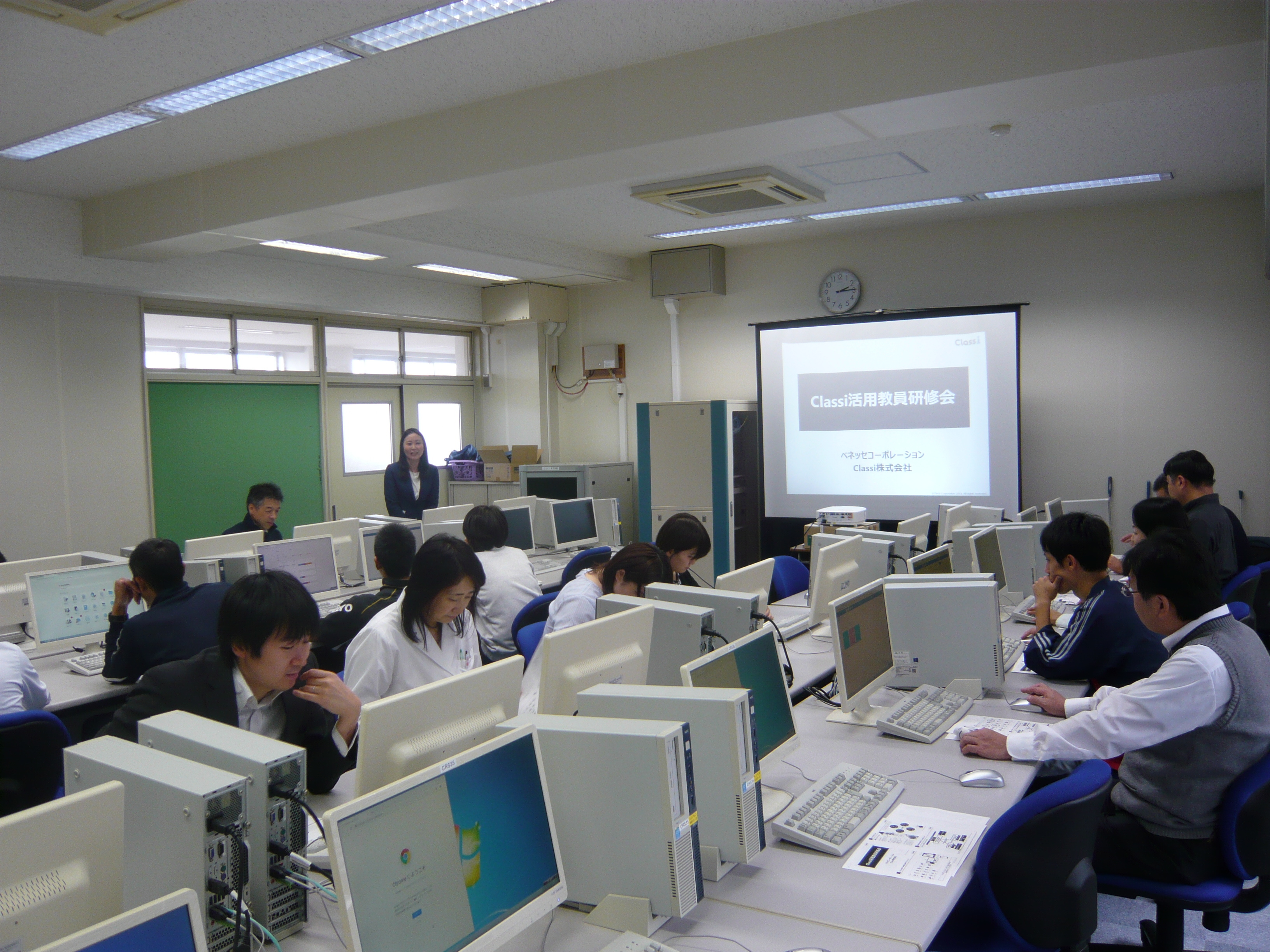 10月2日(火)、情報処理室にて株式会社ベネッセコーポレーションより栁葉様をお招きしまして「Classi講習会」を開催しました。今年度より本格導入した「Classi」の操作方法をわかり易く説明いただき、参加者も基本的な機能の理解に取り組みました。